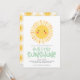 Cute funny yellow sunshine illustration birthday party invitation. Yellow rainbow illustration typography design. Part of a collection.