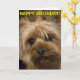 Cute Yorkshire Terrier photo greetings card. Front text reads "Happy Birthday", inside text reads "Hope you have a great day!" Text can be customised.