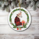 Cute Yorkie in Christmas Wreath Ceramic Tree Decoration