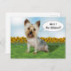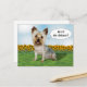 Write your own custom text in the dog's speech bubble and make it personal. This postcard features a very cute little Yorkshire terrier in front of a row of sunflowers and will be a delight to receive by your friends and relatives. Keep in touch from far away places.