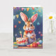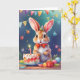 Cute character at celebration party. Blank for your own greeting and personal message inside.