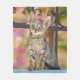 Cute Young Tabby Kitten with Blue Eyes in a Garden Fleece Blanket