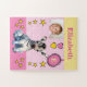 Cute zebra photo name pink yellow kids jigsaw puzzle