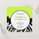Cute Zebra Print Custom Lime Green Custom Wedding Invitation