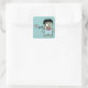 This is a cute Halloween season sticker, with a cartoon image of a Zombie monster with goofy eyes and lots of teeth! The text on the left side says "Need more Candy" in black and red. The image and text are placed on a teal background.
