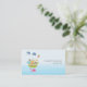 Whimsical business cards with a cute nursery style illustration of an ark filled with wild zoo animals and a butterfly flying overhead and a friendly whale spouting water below. Some blue clouds float on by. Set on a light blue ombre background.