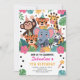 Get ready to go wild with this cute Jungle Safari Party Animals Birthday Invitation! Featuring adorable animals — tiger, monkey, elephant, giraffe, and zebra — all wearing colorful party hats, this fun and cheerful design is perfect for a kids’ jungle, zoo, or safari-themed birthday party. Bright colors, tropical leaves, and happy faces make it a delightful way to invite family and friends to celebrate your little one’s big day. Fully customizable for any name, age, or event!