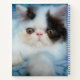 This cute Getty Images photo features a fluffy black and white kitten sitting on blue blanket.