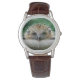 The watch looks really great! Very sharp and well done. The leather band is really nice, though for a man's watch I think it should be longer. Unfortunately, it isn't big enough for my husband's wrist but I will get a replacement because he is very excited to wear it!