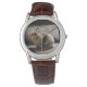 I was uncertain about the size being too small but it looks good. The case looks like aluminum (not shiny) and the time is easy to see. I changed the band because the leather doesn't go with my lifestyle.a. Exactly what I expected, nice yellow. It grabs peoples attention.