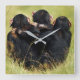 Cutest Baby Animals | Three Chimpanzees Hugging Square Wall Clock