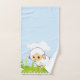 Cute little lamb on a green frame with butterflies, kawaii style!