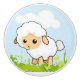 Cute little lamb on a green frame with butterflies, kawaii style!