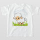 Cute little lamb on a green frame with butterflies, kawaii style!
