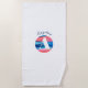 Indulge in the ultimate comfort with this luxurious white beach towel, personalised with the initial "A" and the owner's name. The design features a vibrant and eye-catching colourful circle with a captivating red and blue gradient effect. This high-quality beach towel not only offers superior absorbency but also showcases a unique and personalised touch with its distinctive initial and name embellishment set against the striking gradient backdrop. Perfect for lounging by the pool or relaxing on the beach, this towel combines practicality with personalised elegance.