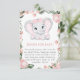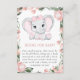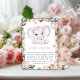 Cutie Elephant Blush Pink Floral Girl Baby Shower Enclosure Card