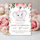 Cutie Elephant Blush Pink Floral Girl Baby Shower Invitation
