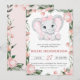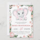 Cutie Elephant Blush Pink Floral Girl Baby Shower Invitation
