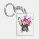 This design features a cute watercolor French Bulldog dressed in a very fashionable black and pink polka dot bow.