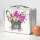 This is a standard metal lunchbox that appears to work just fine. We designed this box ourselves with an uploaded photo and custom text on the front and back. It looks absolutely beautiful except the front of the lunchbox is not centered like it shows in the photo. The print borders don't align with the inset flat part of the box where the preview photo online showed it perfectly centered in there. The back looks nice and centered though.