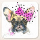 This design features a cute watercolor French Bulldog dressed in a very fashionable black and pink polka dot bow.