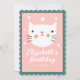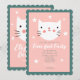 Cutie Kitty Pink Green Purple Stars Birthday Invitation