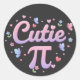 Cutie Pi Symbol Math Pun Pink Butterfly Hearts Classic Round Sticker