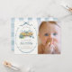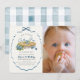 This cute "little cutie pie" boy's 1st birthday photo invitation features a blueberry pie with blueberries surrounded by a navy blue bow frame. The reverse side features a white background with baby blue gingham patterns. Personalize it for your needs. You can find matching products at my store.