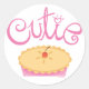 Cute new design of "cutie Pie" stickers. Copy reads Cutie with a pie icon below.