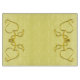 Leaves in outline. Two golden yellow leaves in three dimensional outline (resembles wire) are intertwined on each short side. Background of yellow.