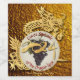 Customisable Wine label for Chinese New Year of the Dragon 2024 with grape, text in French "Cuvée Spéciale" and "of the Dragon Year" + Large 2024 (original handwriting) + family name on golden background with large golden Dragon paper-cut. All is customisable.