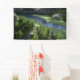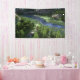 A winding path leads over the mountains to a solitary river valley. It crosses the rocky stream over a line of stepping stones and ends at a lonely house nestled under the trees at the foot of the hills. The mountain meadow is filled with the green grass and patches of blue and pink flowers. The overshadowing peaks are still covered with snow on this spring morning.