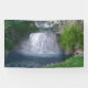 Foaming water falls into the deep pool and feeds a rocky mountain stream. Grass and heather soften the rock walls overshadowing the falls, with patches of snow showing that it's still a cold spring day. Beside the pool stands a tree with a wooden swing hanging from its branches. Early spring foxgloves and cornflowers sprinkle the grassy banks, and shafts of sunlight glitter in the spray.