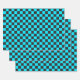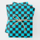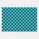 Cyan and charcoal checkerboard pattern wrapping paper sheet