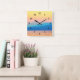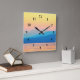 Cyan and Salmon Sunset Square Wall Clock