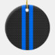 Cyan Blue Carbon Fibre Style Racing Stripes Ceramic Tree Decoration