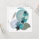 A modern boho design with unique shapes and textures in shades of cyan, dark green and olive.