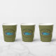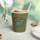 Straight from the bar this paper cup features a blue-toned Sockeye Salmon with text reading "Cyanotic Salmon Bar & Grill Kenai, Alaska" and "Combat Fishing Rest And Relaxation. Add your own additional text. Fishing for salmon is very popular, too popular in Alaska. Imagine hundred of anglers, just about shoulder to shoulder, lining both banks of a stream trying to avoiding crossing lines with everyone else in hopes of landing a big salmon.  That's combat fishing. After a day of that take some R&R at the mythical Cyanotic Salmon in Kenai. Fishing tales told there...some true.