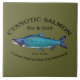 A blue-toned Sockeye Salmon with text reading "Cyanotic Salmon Bar & Grill Kenai, Alaska" and "Combat Fishing Rest And Relaxation. Fishing for salmon is very popular, too popular in Alaska. Imagine hundred of anglers, just about shoulder to shoulder, lining both banks of a stream trying to avoiding crossing lines with everyone else in hopes of landing a big salmon. That's combat fishing. After a day of that take some R&R at the mythical Cyanotic Salmon in Kenai. Fishing tales told there...some true.