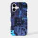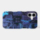 Cyber Blue PCB Circuit Board Trace Pattern Art