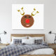 This awesome canvas print features a funny cartoon of a Reindeer. He has beady black eyes and a huge bright red glowing nose. The antlers are pointing up and look futuristic making this reindeer a cyber reindeer. He is still cute and friendly though.