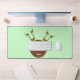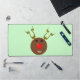 This awesome desk mat features a funny cartoon of a Reindeer. He has beady black eyes and a huge bright red glowing nose. The antlers are pointing up and look futuristic making this reindeer a cyber reindeer. He is still cute and friendly though.