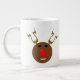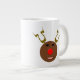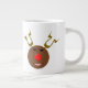 This awesome mug features a funny cartoon of a Reindeer. He has beady black eyes and a huge bright red glowing nose. The antlers are pointing up and look futuristic making this reindeer a cyber reindeer. He is still cute and friendly though.