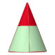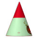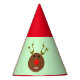 This awesome party hat features a funny cartoon of a Reindeer. He has beady black eyes and a huge bright red glowing nose. The antlers are pointing up and look futuristic making this reindeer a cyber reindeer. He is still cute and friendly though.