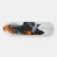 This futuristic skateboard deck design showcases the striking profile of a sleek black cat with vivid orange eyes, contrasted against a white background. The cat’s fur is intricately detailed, with its gaze exuding intelligence and mystery. Surrounding the feline is an abstract fusion of orange and black geometric patterns, evoking a high-tech, cyberpunk aesthetic. Fine lines and grid-like structures, reminiscent of engineering blueprints, add a technical and modern dimension to the artwork. Crafted with the help of AI, this piece blends digital precision with artistic flair, creating a captivating design that celebrates both technology and nature. Perfect for skateboarders, tech enthusiasts, and art collectors, this deck stands out as a bold statement of innovation and style.