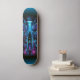 "Dive deep into the digital underground with 'Cyber Infiltrator: Hacker's Lair Skateboard Deck'. This deck plunges you into a hacker's sanctuary, illuminated by the cool glow of screens and neon. The central figure, a hacker equipped with cybernetic enhancements, is poised to breach the most secure networks. The deep blues, purples, and cyans set a tone of concentration and cyber warfare