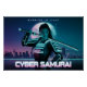 Unleash the power of Cyber Samurai. This futuristic warrior wears shining neon armor and swings a Katana that illuminates the darkness. In front of an impressive urban setting with retro-futuristic elements, this design embodies the perfect harmony between tradition and technology.