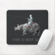 Cyber Security Squad mouse pad with a mediaeval knight in armour riding a rhino.