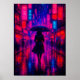 Cyberpunk City Night with Neon Lights and Umbrella Poster