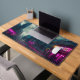 Immerse yourself in the vibrant world of cyberpunk with our Cyberpunk City Street Neon Lights Gamers Gift Desk Mat. The captivating design showcases a futuristic cityscape with towering buildings and intricate geometric patterns. The neon lights illuminate the dark streets, creating a mesmerising and immersive gaming atmosphere. The abstract perspective adds depth and dimension, transporting you to a virtual world of advanced technology and urban allure. Whether you're a fan of cyberpunk games or simply appreciate the edgy aesthetic, this desk mat is a must-have for any modern gamer. It also makes a great gift for gamers who crave a touch of cyberpunk in their gaming setup. Elevate your gaming experience with this cyberpunk-inspired desk mat and embrace the fusion of technology, neon lights, and urban design.